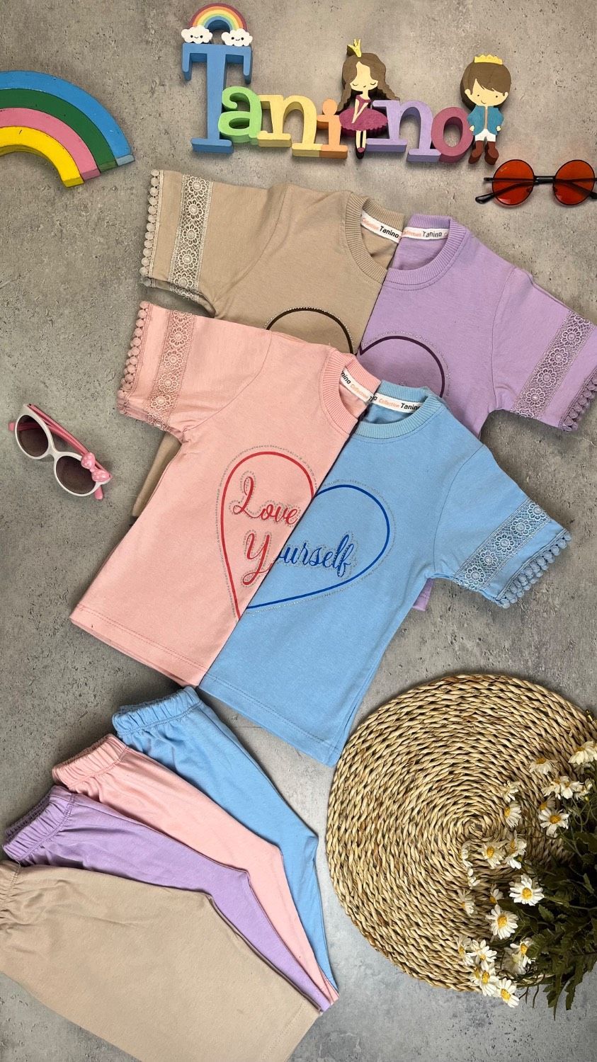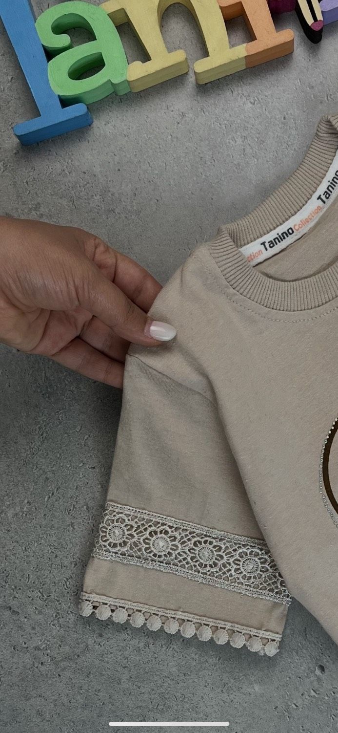 🌺🌺 تیشرت شلوارک دخترانه پارچه یکرو پنبه سوپر ، آستین تور کاری شده با کیفیت عالی 🌺🌺