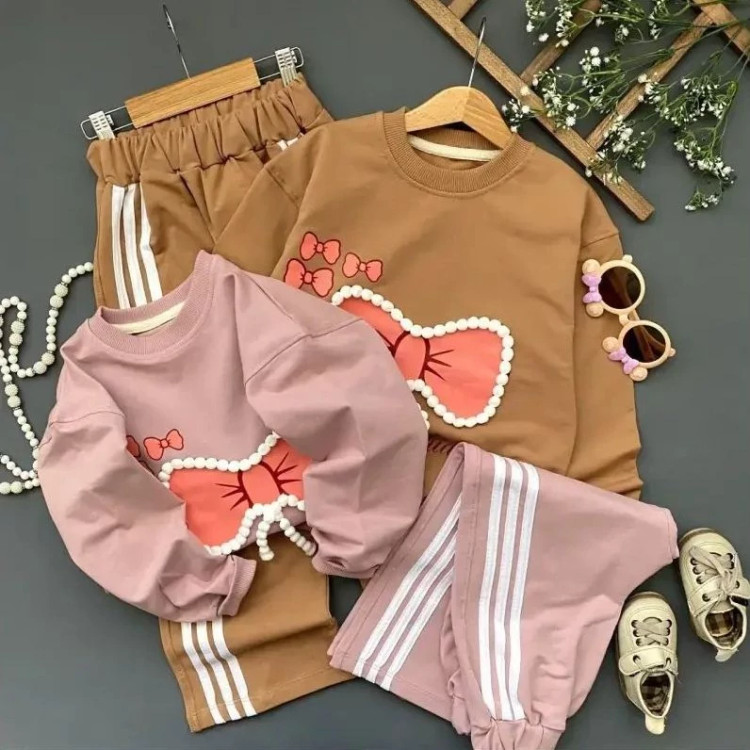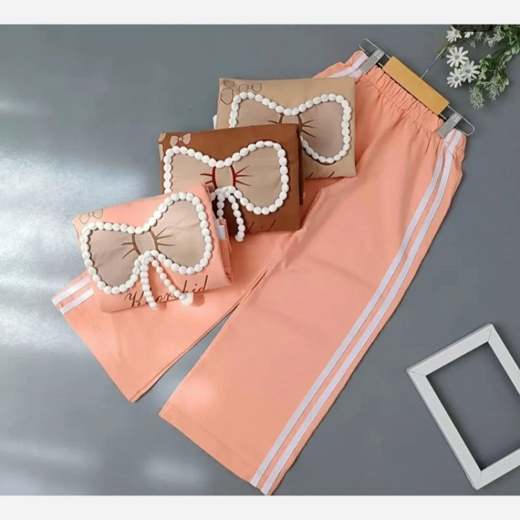 بلوز شلوار دخترانه سوپر پنبه دورس پاپیون برجسته