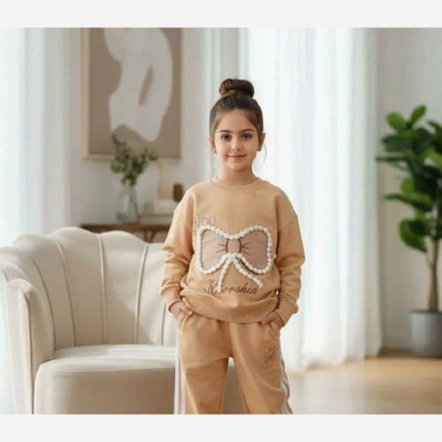 بلوز شلوار دخترانه سوپر پنبه دورس پاپیون برجسته